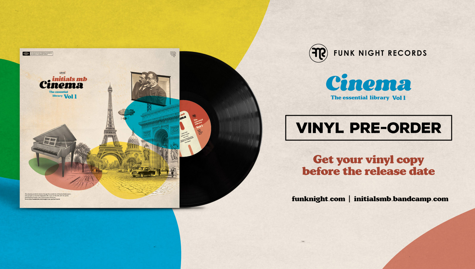 Un an après « Brighter », Initials MB revient avec son 6ème album « Cinema », un album instrumental qui prolonge l’élan initié par « Bang bang! » (en 2023 sur le label le pop club). Un disque qui plonge l’auditeur dans une atmosphère rétro et cinématique, où flotte une douce nostalgie, comme une vision idéalisée de la musique de film des années 60.